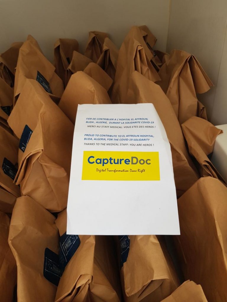 CaptureDoc est fier de sa contribution, en envoyant des repas au personnel médical de l’hôpital El Affroun, Blida, Algérie. Nous allons continuer ces efforts récurrents et dire bravo aux héros staff médical ici et partout dans le monde. Nous publierons bientôt des services gratuits de transformation numérique sur www.CaptureDoc.com pour rejoindre la solidarité et lutter contre le Covid-19.